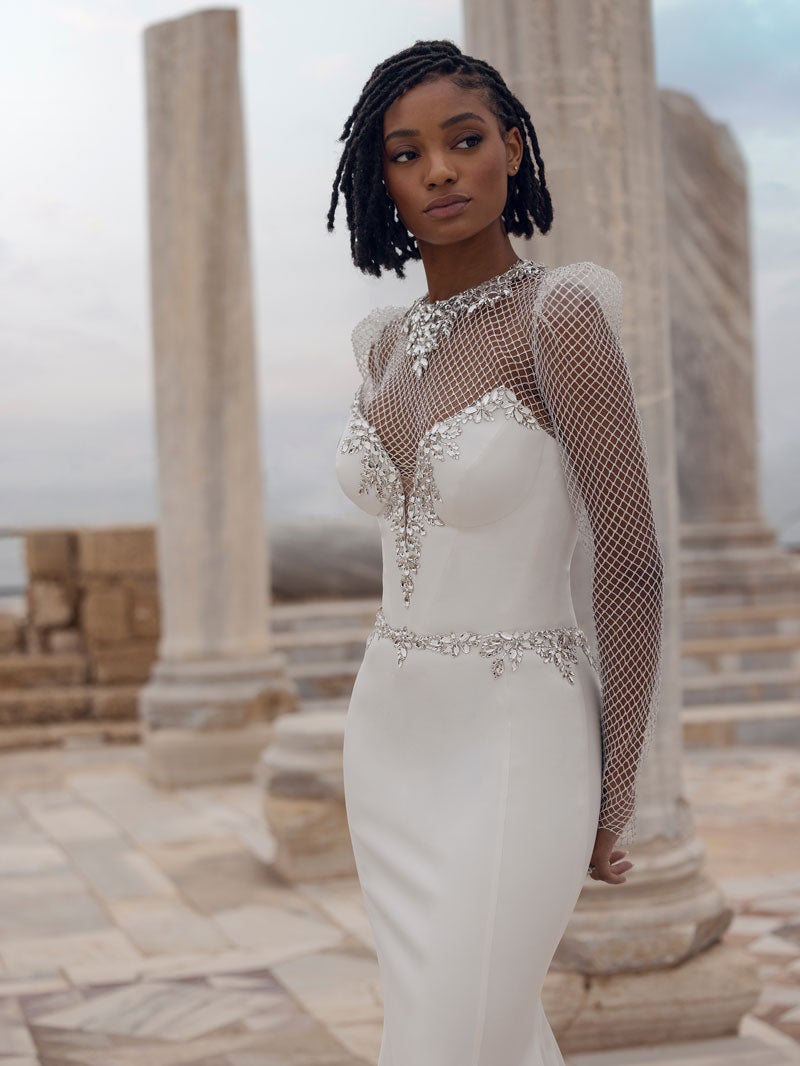 From her world-famous corsetry and impeccable fit to her signature Swarovski crystal embellishments, Pnina Tornai wedding gowns turn heads. Her unique and audacious designs are ideal for the fashion-forward bride steering clear of mainstream fashion, and rather, seeking a once-in-a-lifetime statement.