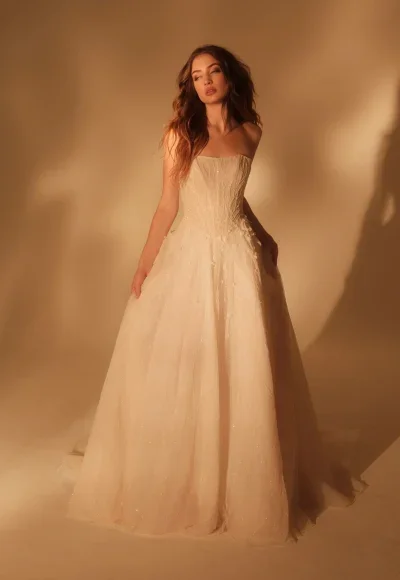 Due to the meticulous craftsmanship and methods of our couture bridal designers, there is the option for customizations. Inquire with your personal bridal stylist to transform your look into one that is entirely yours. Whether it be modifications to the neckline or silhouette, extending the train, or adding intricacy to the gown’s fabric, the possibilities are boundless.