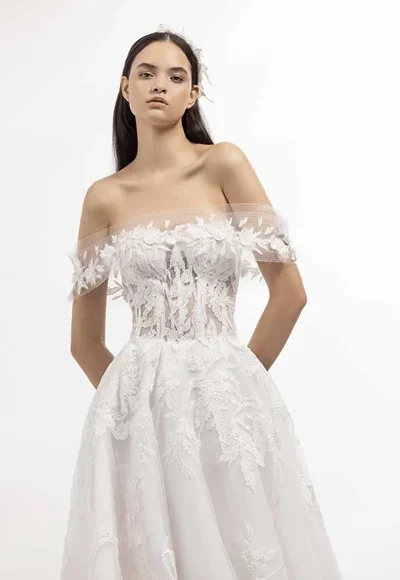 Before saying “yes” to your fall wedding dress, consider factors such as the “I do” locale, wedding formality, and your body type. Similarly, consider the elements of your autumnal surroundings that you may want to highlight. Most importantly, select the gown that reflects your personal style and makes you feel like the most elevated version of yourself. While some brides may want to play off of the texture and leafy designs of the season, others may opt for the drama of long sleeves or a seemingly endless train.
