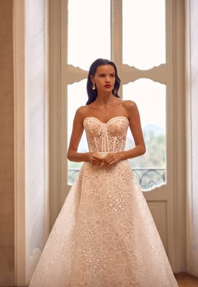 From mermaid to ball gowns, we offer a variety of stunning silhouettes to bring your unique bridal vision to fruition. If you’re looking to accentuate your curves, you’ll be a knock-out in a mermaid gown. Ready for your princess moment? Every belle looks stunning in a ball gown. Make a statement in a fit-and-flare dress with a detachable overskirt for an added dramatic effect. Or, opt for a gown featuring off-the-shoulder straps or illusion sleeves that will provide coverage while instantly elevating the entire bridal look.