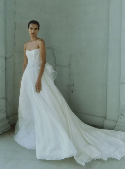 While a variety of necklines have the ability to evoke a romantic aesthetic, strapless and off-the-shoulder gowns are especially romantic as they highlight the collarbones and décolletage.