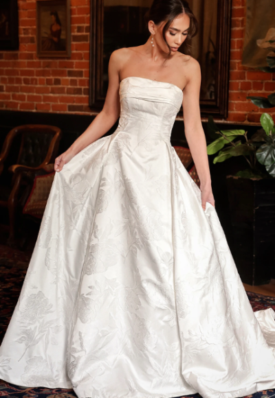 Effortless fabrics and design elements that gently cascade throughout typically define a romantic wedding dress. These designs usually exude a feminine, soft, and dreamy vision that evoke quintessential bridal beauty. From delicate laces, intricate embellishments, free-flowing tulle skirts, and floral designs, there are countless ways to cultivate this look. Bodices that highlight the collarbones and shoulders, such as strapless or off-the-shoulder necklines, are also undeniably romantic.