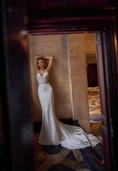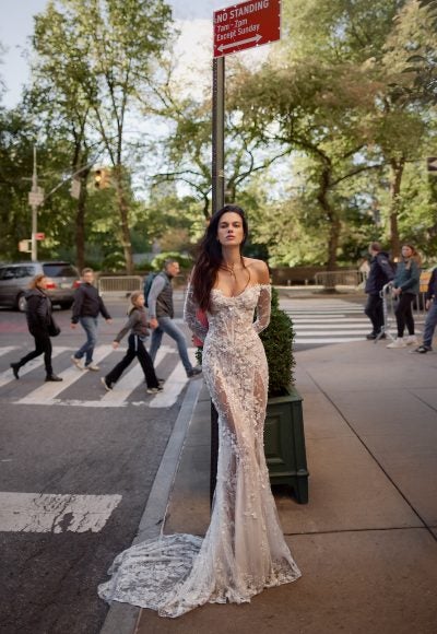 Book your accessories appointment with a personal stylist to discover the ultimate match to your sheer wedding dress! For those who choose this style, we recommend opting for equally delicate and romantic accessories such as a long, ethereal veil. Learn more about accessories by exploring our Wedding Accessories Guide here.