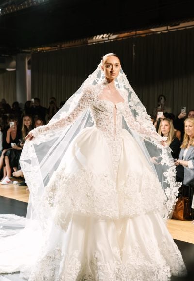 Book your accessories appointment with a personal stylist to discover the ultimate match to your sheer wedding dress! For those who choose this style, we recommend opting for equally delicate and romantic accessories such as a long, ethereal veil. Learn more about accessories by exploring our Wedding Accessories Guide here.