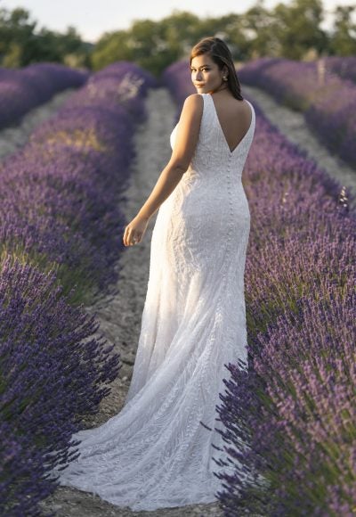 Style #W528-XSPlus-Size Embellished V-Neck Sheath Wedding Dress With Buttons