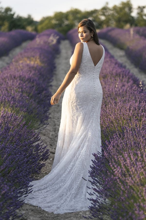 Kleinfeld carries a wide assortment of varying sample sizes for brides to try in store. While sample sizes typically range from a bridal size 6 – 26, please be aware that sample sizes are subject to change based on availability and/or replacement status. For more insight on a specific style’s sizing, please inquire with our team prior to your appointment by emailing info@kleinfeldbridal.com or with your bridal stylist upon arrival.