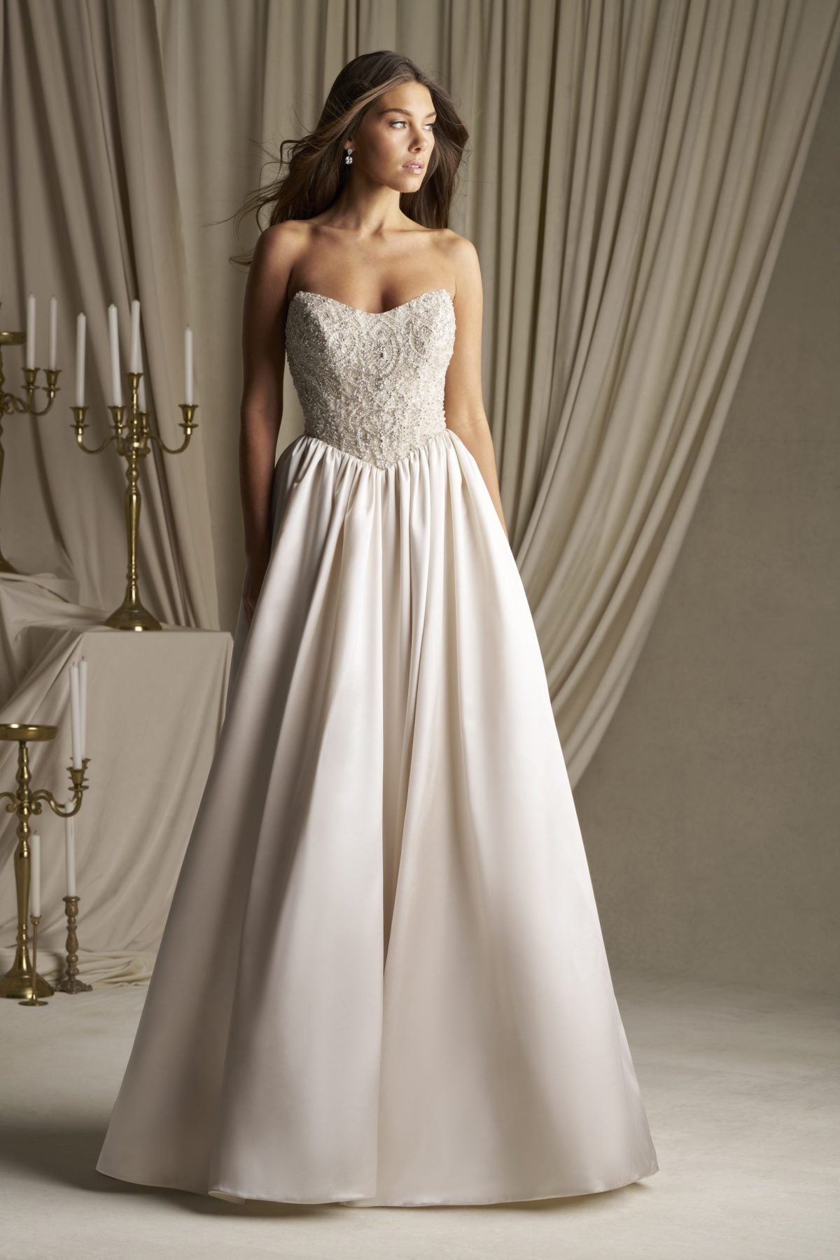 Style #C800Glamorous Embellished Satin Basque-Waist Ball Gown With Buttons