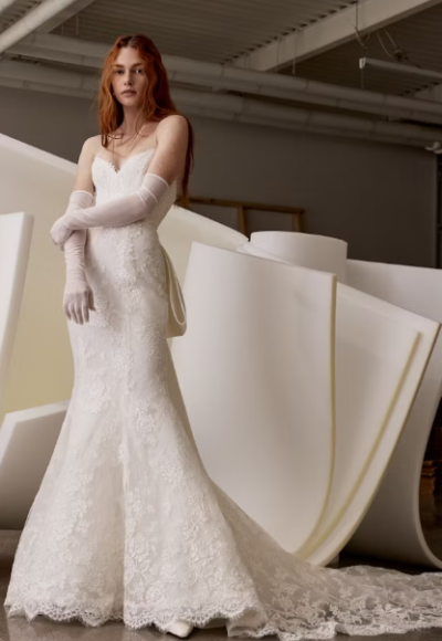 Kleinfeld carries a wide assortment of varying sample sizes for brides to try in store. While sample sizes typically range from a bridal size 6 – 26, please be aware that sample sizes are subject to change based on availability and/or replacement status. For more insight on a specific style’s sizing, please inquire with our team prior to your appointment by emailing info@kleinfeldbridal.com or with your bridal stylist upon arrival.