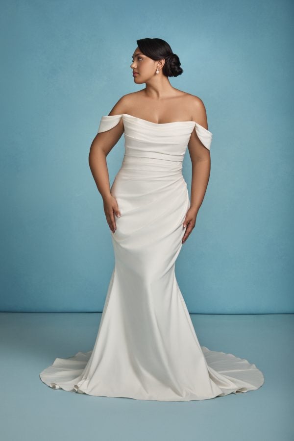 Style #NAOMIXSPlus-Size Timeless Off-the-Shoulder Fit-and-Flare Wedding Dress With Buttons