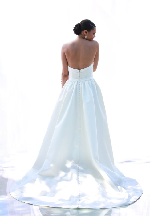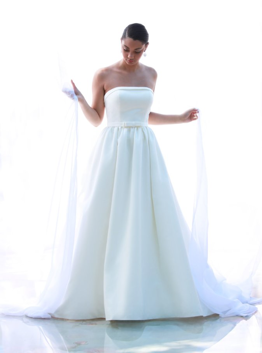 Style #LYDIAClassic And Simple Satin Ball Gown With Bow And Buttons