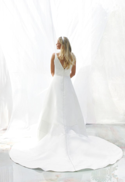 Style #FRANCESCASimple Satin V-Neck A-Line Wedding Dress With Buttons