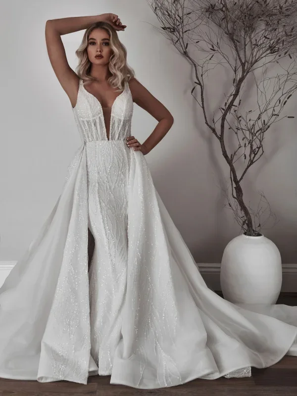 Style #ASTRID-DRESSEmbellished V-Neck Fit-and-Flare Wedding Dress With Open Back