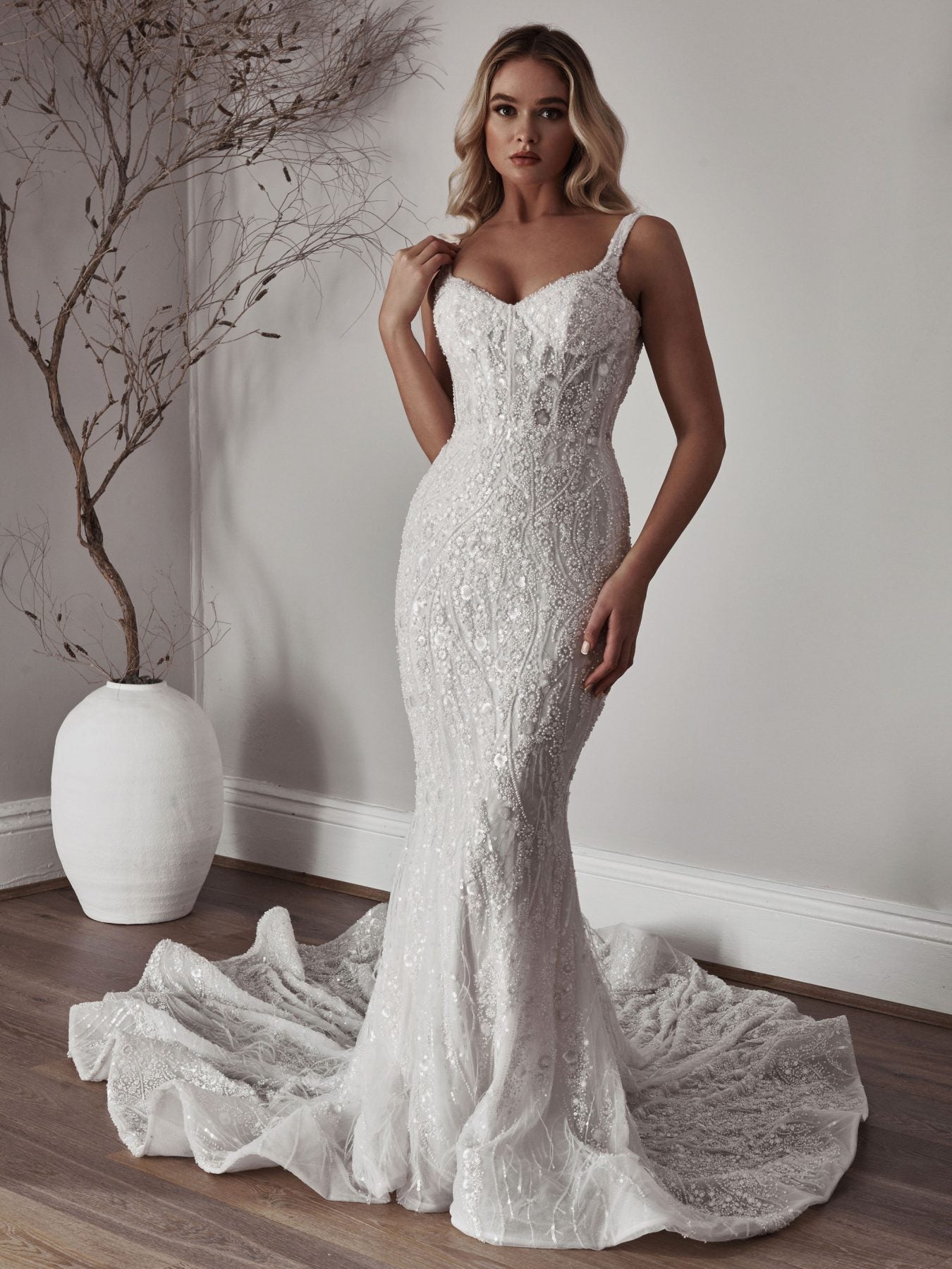 Style #LEAH-GOWNChic and Sexy Beaded Fit-and-Flare Wedding Dress