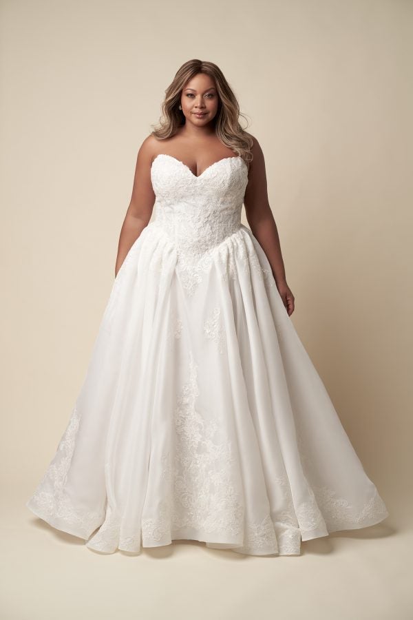 Kleinfeld carries a wide assortment of varying sample sizes for brides to try in store. While sample sizes typically range from a bridal size 6 – 26, please be aware that sample sizes are subject to change based on availability and/or replacement status. For more insight on a specific style’s sizing, please inquire with our team prior to your appointment by emailing info@kleinfeldbridal.com or with your bridal stylist upon arrival.