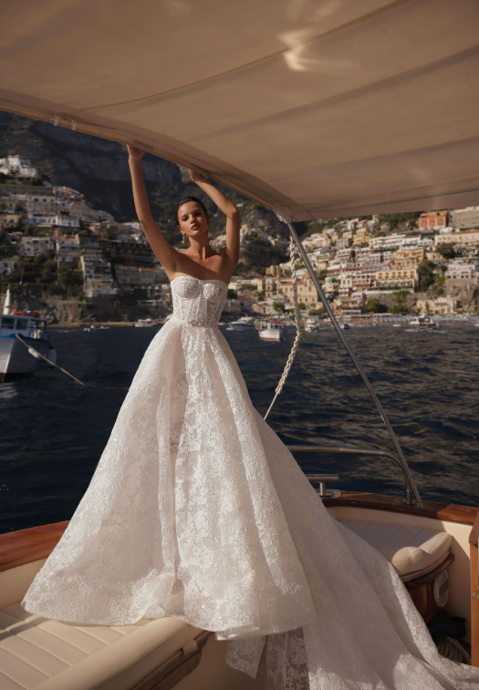 Style #ARINAChic And Romantic Shimmering Lace Ball Gown