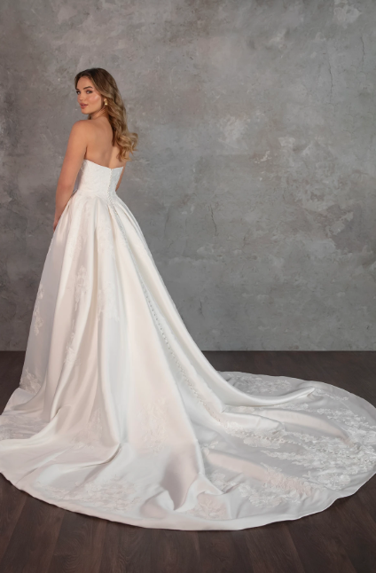 Style #D4265-ZZCat-Eye Lace And Silk Ball Gown With Buttons