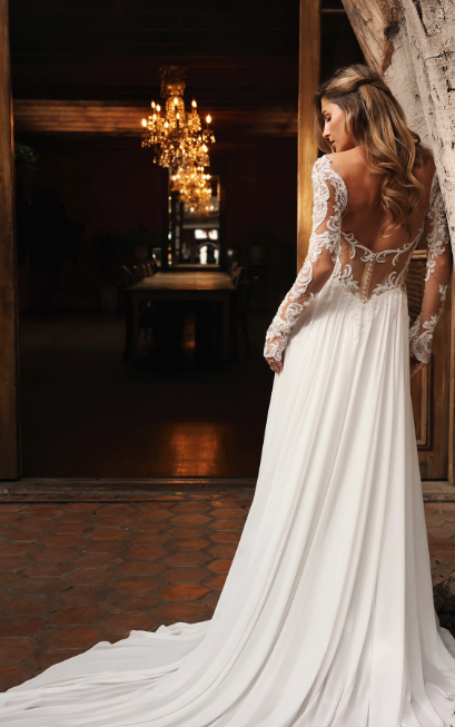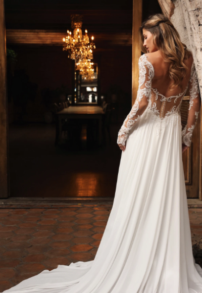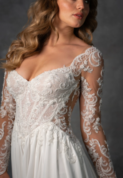 Style #D4350Ethereal And Glamorous Illusion Long Sleeve A-Line Wedding Dress