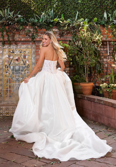 Style #D4351-BUModern And Regal Basque-Waist Ball Gown With Buttons