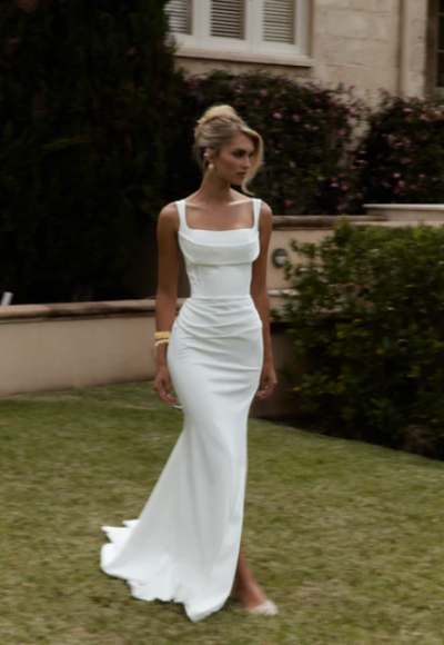 Style #BELAIRChic And Modern Square-Neck Sheath Wedding Dress With Open Back