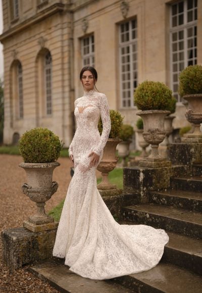 Style #VERSAILLES-GOWNEmbellished Lace Fit-and-Flare Wedding Dress With Detachable Topper And Overskirt