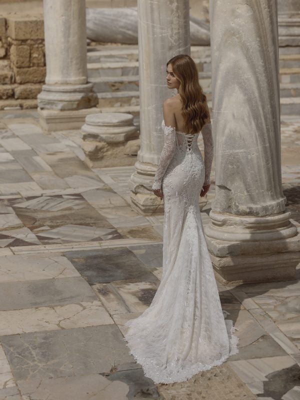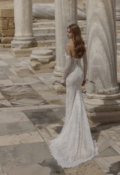 Style #15018NLace Fit-and-Flare Wedding Dress With Detachable Long Sleeves