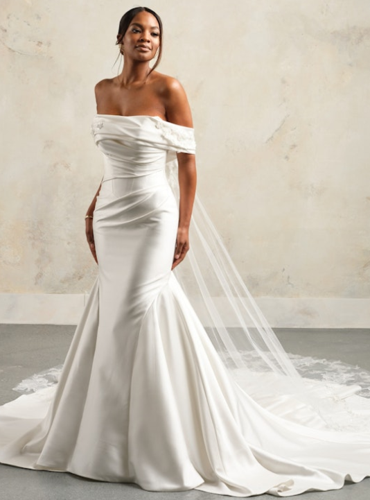 Style #GISELLEXSPlus-Size Classic Satin Fit-And-Flare Wedding Dress With Detachable Train