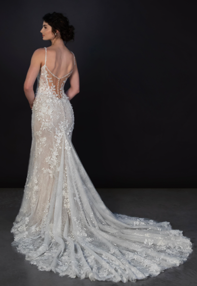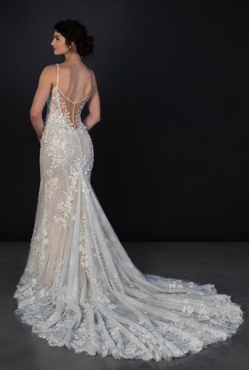 Style #18913D Floral Fit-And-Flare Wedding Dress With Illusion Back And Buttons