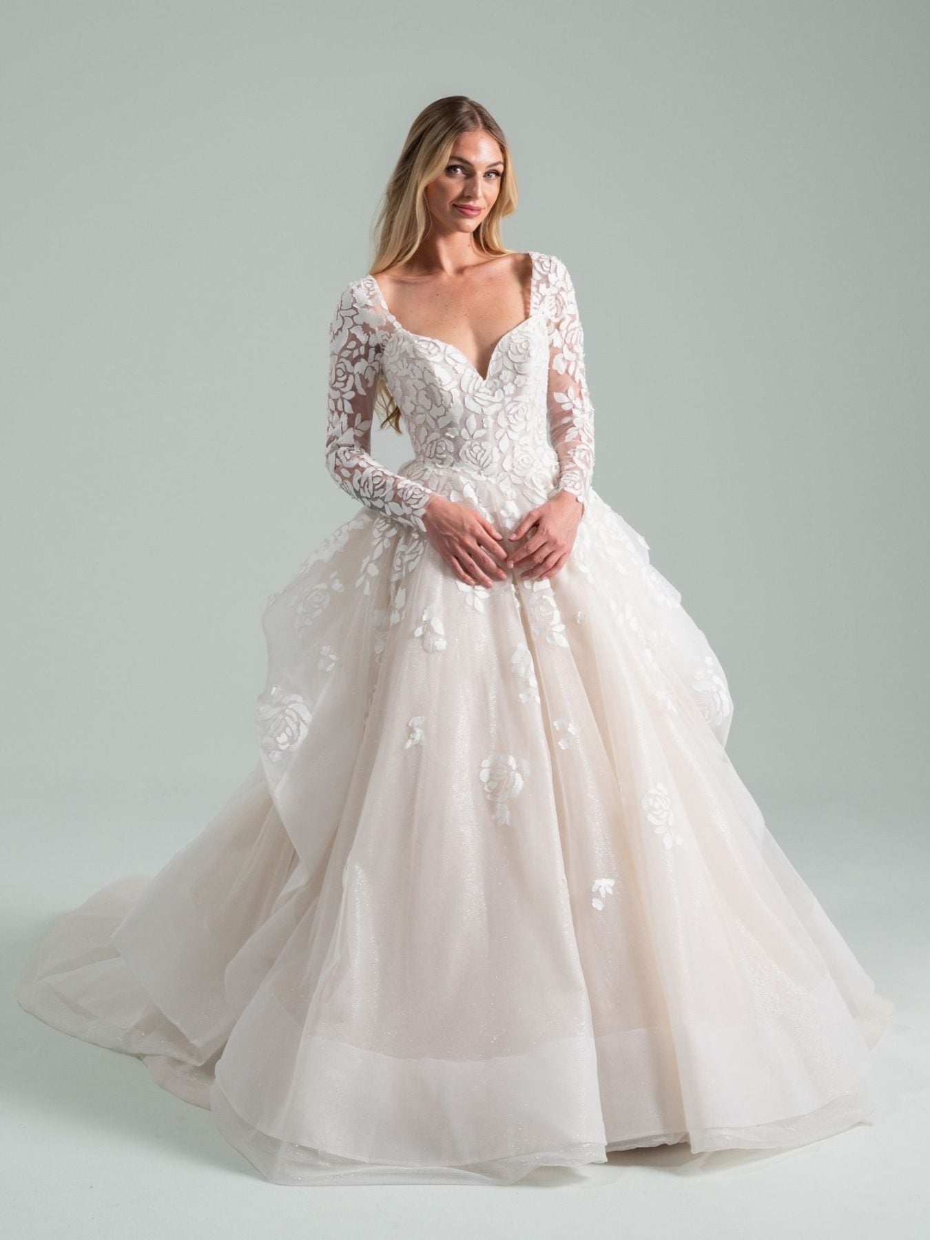 Style #HP62602Modern And Romantic Long Sleeve Floral Ball Gown