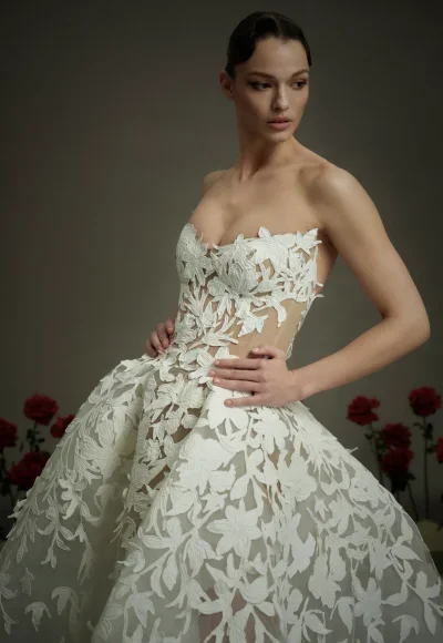 Style #NF109Unique And Romantic Hand-Cut Floral Ball Gown