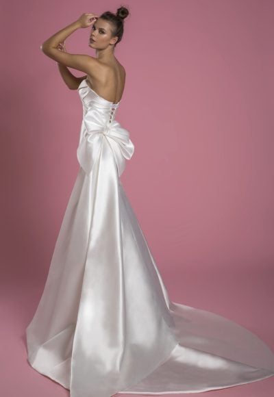 Style #2109-BStrapless Mikado Fit And Flare Dress With Draped Bodice And Bow