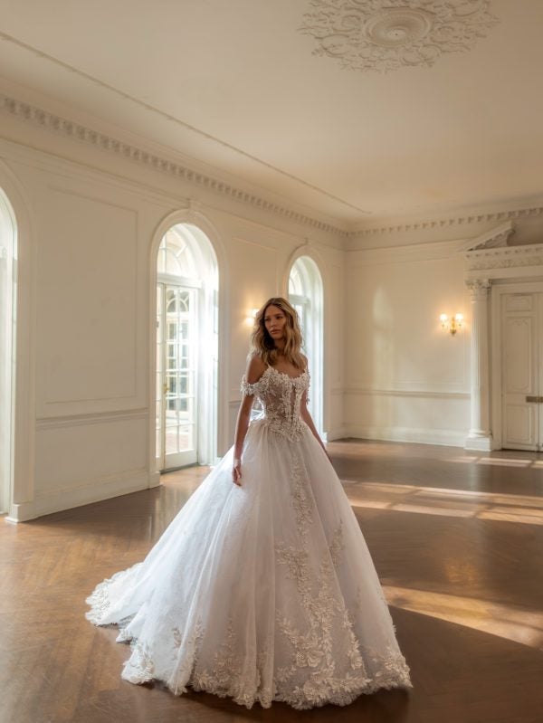 Style #5140Dramatic And Romantic Floral Embellished Lace Ball Gown