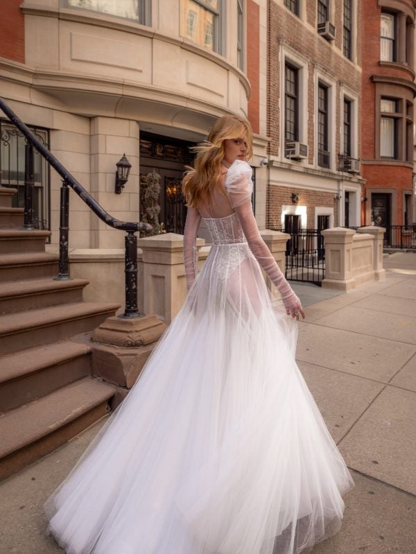 Style #5154Romantic And Feminine Puff Sleeve Tulle A-Line Wedding Dress