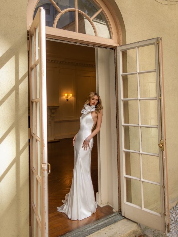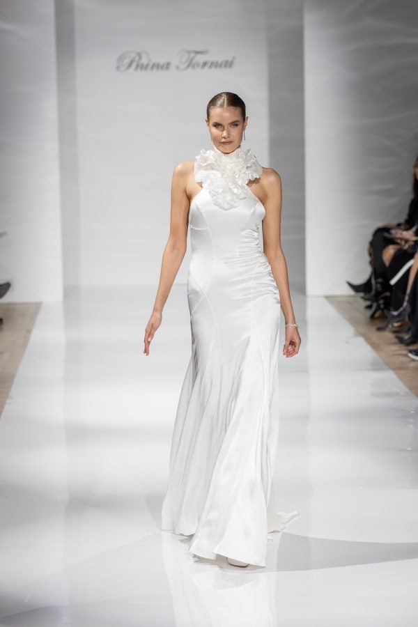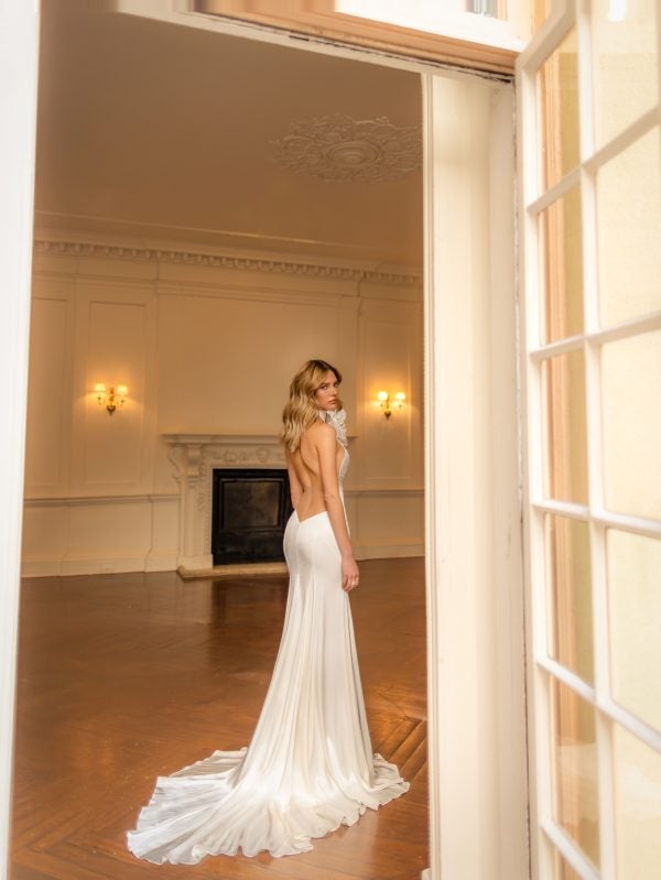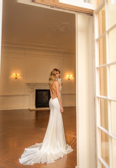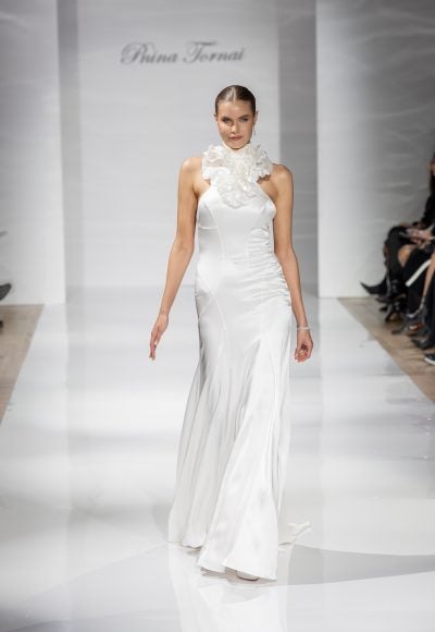 Style #5134Sleek And Simple Satin Halter-Neck Fit-and-Flare Wedding Dress