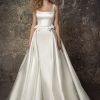Style #4874TSleeveless Satin Square Neck Mermaid With Pearl Belt And Overskirt