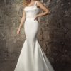 Satin mermaid gown with square neckline and narrow straps, accented with a pearl belt *skirt sold separately* *pearl belt sold separately*