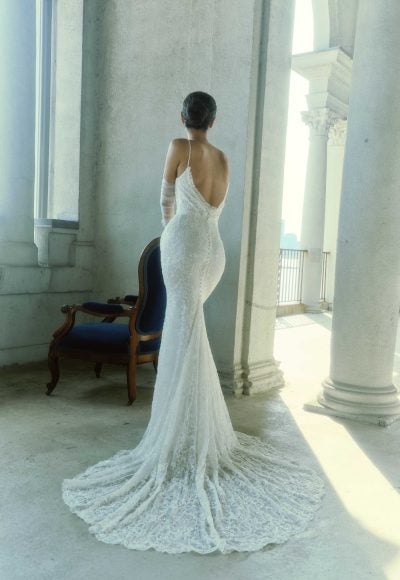 Style #TANSYChic Embellished-Lace Sheath Wedding Dress With Low Back
