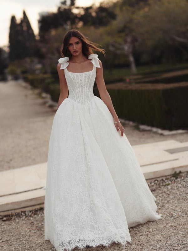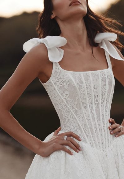 Style #15216Romantic and Feminine Lace Ball Gown With Bows