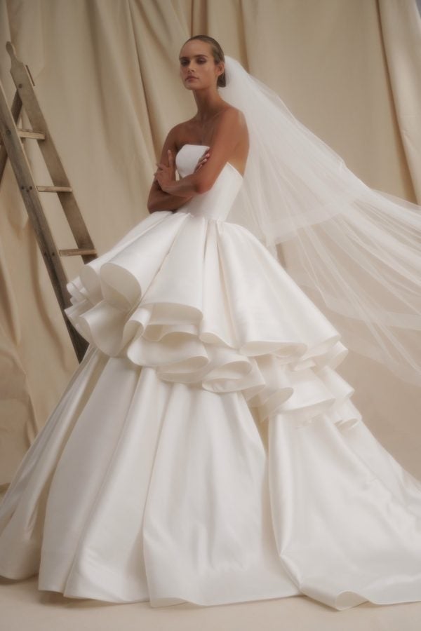 Style #SE030Grand Architectural Ball Gown With Tiered Ruffles