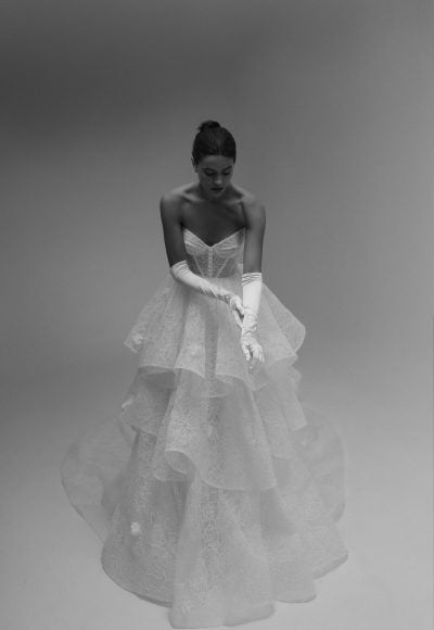 Style #FITZGERALDFeminine And Whimsical Lace Tiered Ball Gown