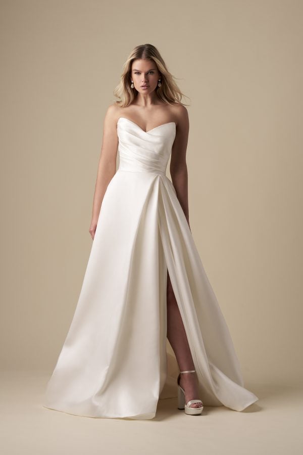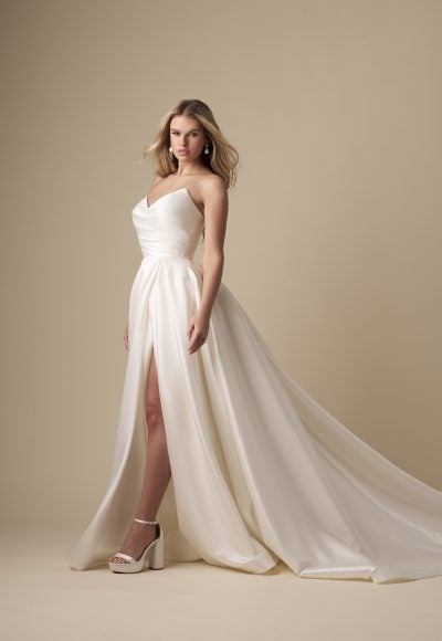Style #LK100Chic And Timeless Strapless A-Line Wedding Dress With Slit