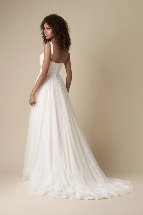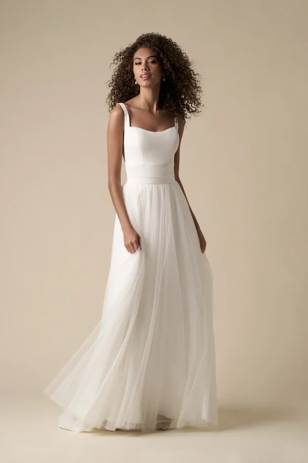 Style #LK115Simple Classic Square-Neck Sheath Wedding Dress With Tulle Overskirt