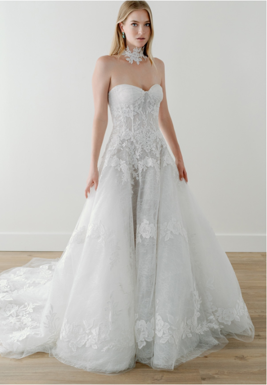 Kleinfeld carries a wide assortment of varying sample sizes for brides to try in store. While sample sizes typically range from a bridal size 6 – 26, please be aware that sample sizes are subject to change based on availability and/or replacement status. For more insight on a specific style’s sizing, please inquire with our team prior to your appointment by emailing info@kleinfeldbridal.com or with your bridal stylist upon arrival.