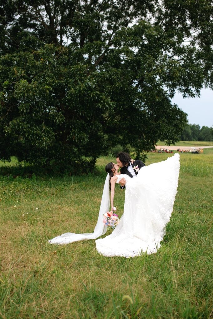 Jay and Ariana were married on August 12th at Chickadee Hill Farms in North Carolina, a farm and miniature horse rescue sanctuary. The wildflower-strewn ceremony took place in a shady grove of trees. The reception was held in the farmhouse surrounded by beautiful animals and rolling hills. Ariana’s mother, Nieves (better known as Events on the Lake) planned it all, putting together a beautiful day in the countryside everyone will remember.