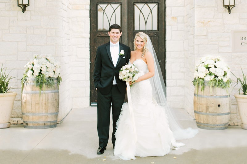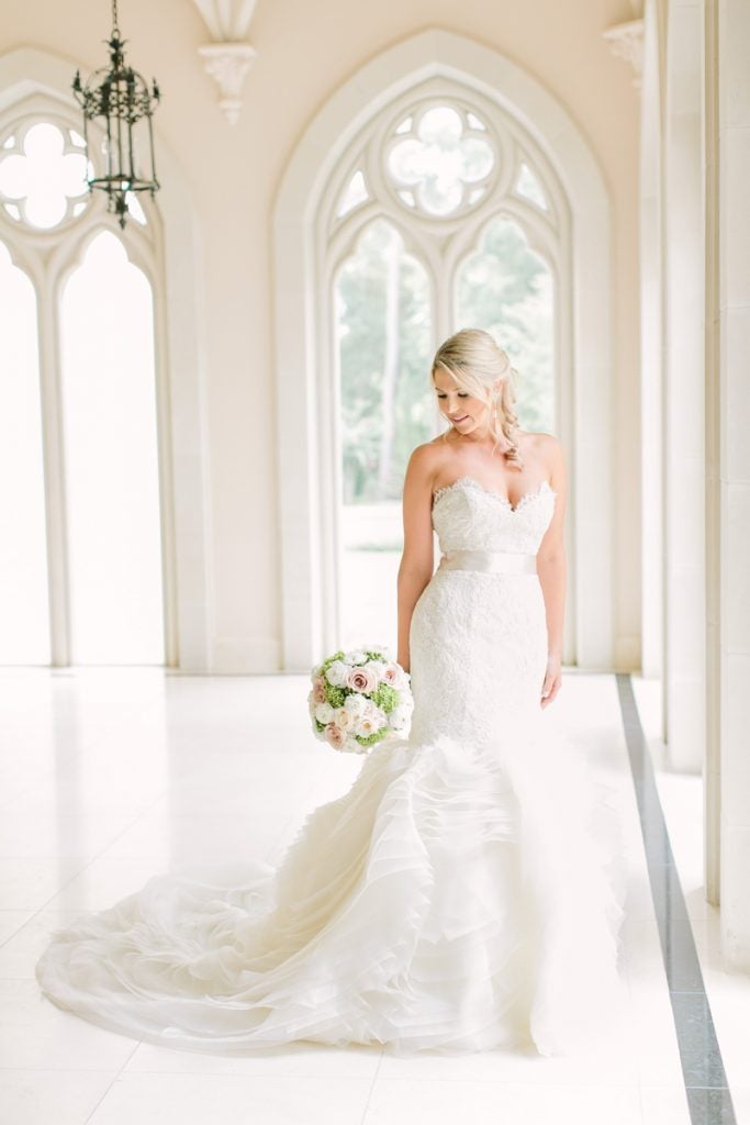 What a dream! My husband and I have been married for 3 months now and it has definitely been the best 3 months of my life! I look back at pictures from the wedding day often (usually at least once a day) and reminisce on the beauty of it all. The friends, the family, the love, the venue, the decor, the flowers, and of course… THE DRESS. My family and I came to New York for some bridal shopping during Christmas time. I had found a dress in Houston that I loved and my mind was pretty much set. We had decided to go to Kleinfeld for the experience anyway. We tried on about 10 dresses before I saw the one hanging in the walkway back to the dressing room. Little did I know, I had seen this dress before… I tried on the gorgeous Lazaro dress and fell in love. After much debating, I was totally torn between 2 gowns—this gorgeous one and the gown I found in Houston. I tried some others on, and of course, came back to the Lazaro. Totally torn, I wanted to leave and come back to the decision because I could not decide. Right before we were about to leave, my Aunt asked me, “Which dress do you think Adam will love more?” It hit me like a ton of bricks. The dress I was wearing, and come all the way to NYC for, was it. Thinking about walking down the aisle to my handsome groom (a moment every girl dreams about), I knew that was the dress he would love to see me in. After a few tears and a lot of excitement, I said “YES” to the dress! Our consultant was wonderful and we had the best experience. I am so glad we made the trip to find the dress of my dreams at the one and only Kleinfeld. After the awesome girls trip to New York, while I was anxiously awaiting the arrival of my dress, I scrolled back through my Pinterest board only to find the first wedding dress I ever pinned was, you guessed it, my Lazaro wedding dress. I knew it looked familiar when I was eyeing it on the rack on the way back to the dressing rooms! Guess it goes to show it was simply meant to be!