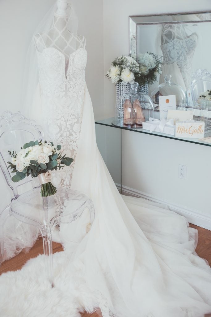 My mom, my sister, and I were like kids in a candy shop at the Kleinfeld store on the day I found my dress! After trying on 4 dresses that I loved but weren’t quite the one, my mom asked our sales associate if she could put me in the Pronovias dress that my mom had picked out for me. I barely needed to step in front of the mirror to know that I was ready to say YES to the dress! The only downside was I had alway pictured myself in a princess dress and this was a fitted style with the most incredible beading. The solution? The amazing Kleinfeld team custom-made me a tulle overskirt that I wore during our ceremony and then removed during our reception so I was free to move around and dance!