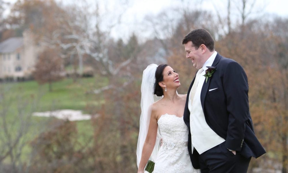 Although James and I both went to Marist College, we met over a wink on Match.com. We had our first date at Madison’s Bar and Grill in Hoboken over Monday Night Football and beer. Fast forward a year and a half, on a rainy Saturday, we took our dogs Melvin and Thumper for a walk to my childhood park. James turned a gloomy weekend in to one to remember when he proposed near the pond with the dogs as our witnesses.