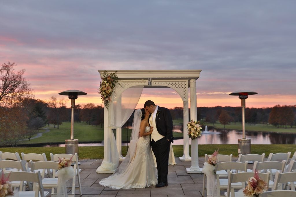 We were married at the Brooklake Country Club in Florham Park, NJ, or as my husband likes to call it, “a really nice golf course”. We were married outdoors on the last Saturday in November in what our matire d’ Peter called “a once in a lifetime day”. James and I had pink sunsets and starry skies for our photos. This went perfectly with our romance theme and colors of blood red and rose gold. Our florist Linda at The Florist Garden created beautiful bouquets made from black magic roses and calla lilies. Our groomsmen wore white calla lilies dipped in gold. James, our guests, and I danced the night away to tunes played by Jimmy Dee Entertainment.