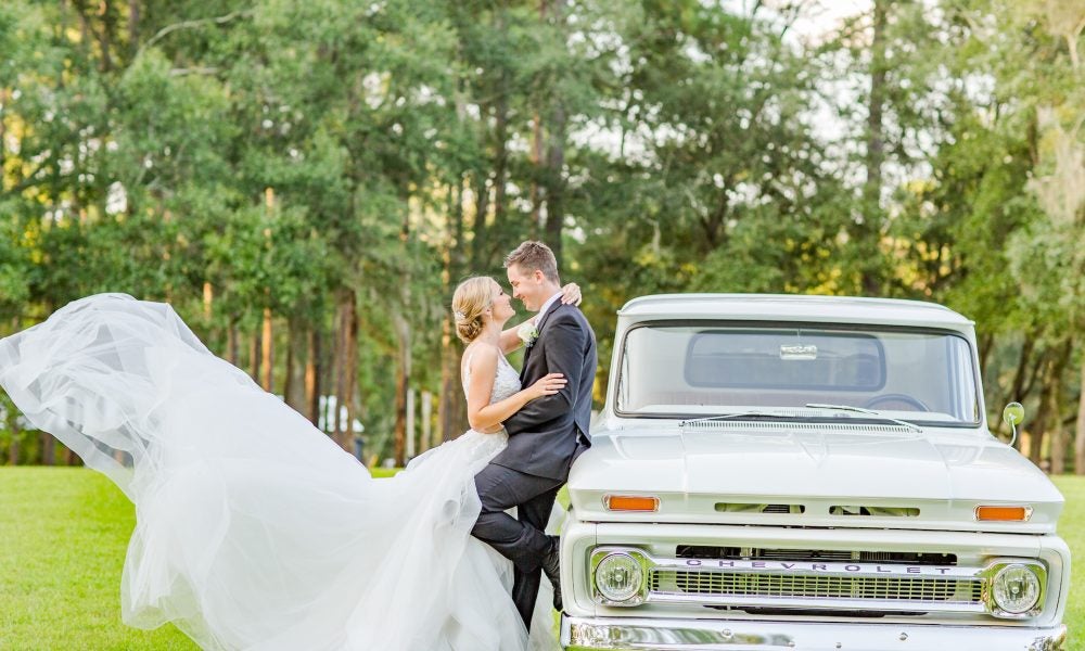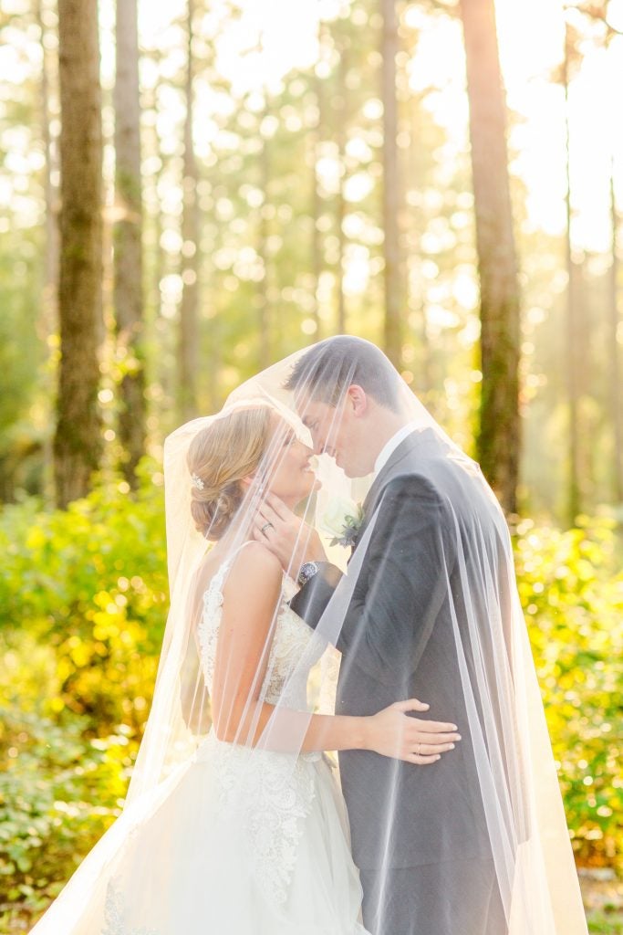 We are high school sweet hearts, and have been together for 9 years! He popped the question on some my parents property in GA in the middle of planted pines, both my parents were in on the surprise so they were there to catch it on camera! My oblivious self thought we were going to take pictures of my parents…NOPE! We took some photos I went to check the camera…there was no SIM card both my mom and Jon freaked out! Thankfully Jon had a card in his pocket from checking hunting cameras earlier in the day! We took our picture and as I tell my parents it was there turn and bent down to get pine straw out of my ankle I turn around to Jon getting down on one knee. I was shocked!!!! I am such a family person it meant the world to have my parents present and on family property. As I admired the unique shape of the diamond it hit me this was my mom’s marquise diamond. Which got me even more emotional and blessed.