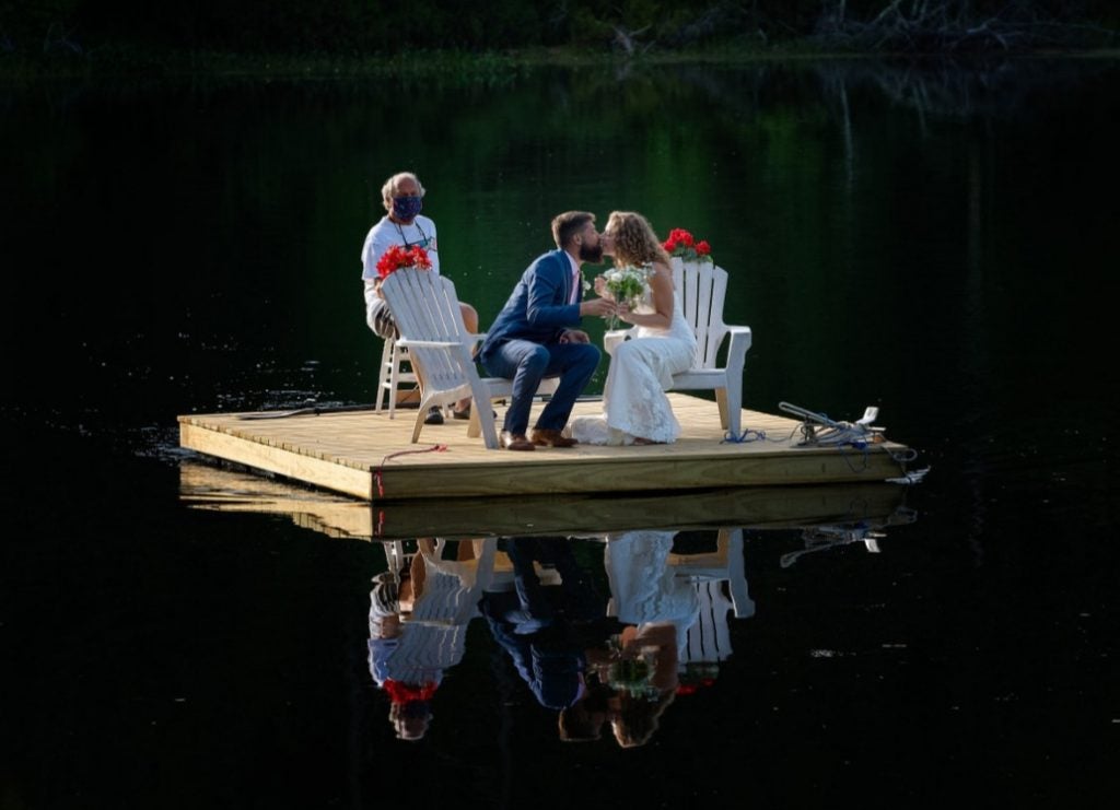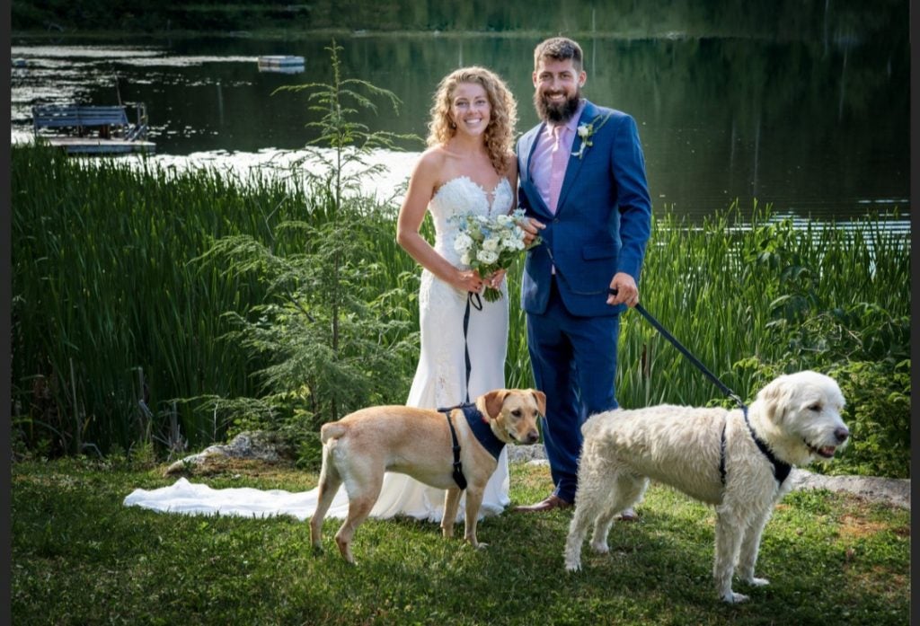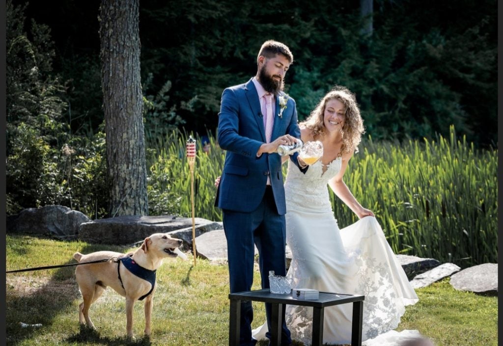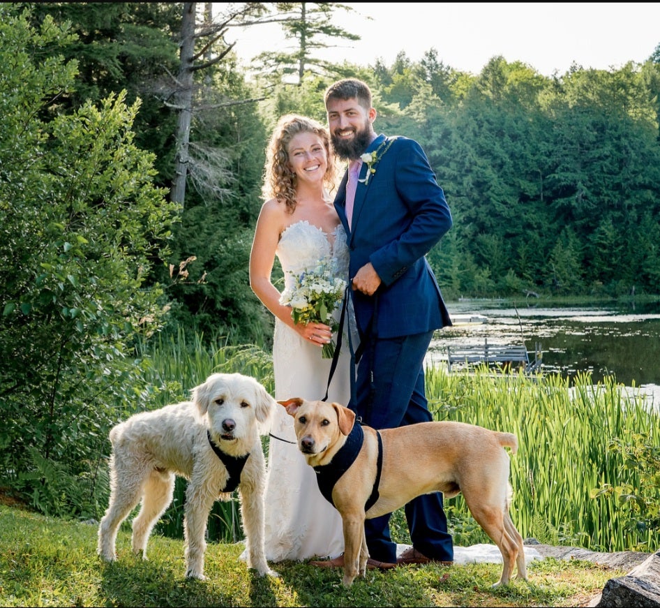 August 1st, 2020 ended up being the most magical day. We were married in Jamaica, Vermont on beautiful Cole Pond in front of our immediate family members and our two fur babies Kodiak and Yukon (see pictures!). Even though it was not the large ceremony and reception that we had originally planned, it ended up being so much more special and intimate this way! The wedding was complete with a beer ceremony (we are huge fans of Vermont IPA’s) and we had a grand exit on the floating dock (see pictures attached!)!