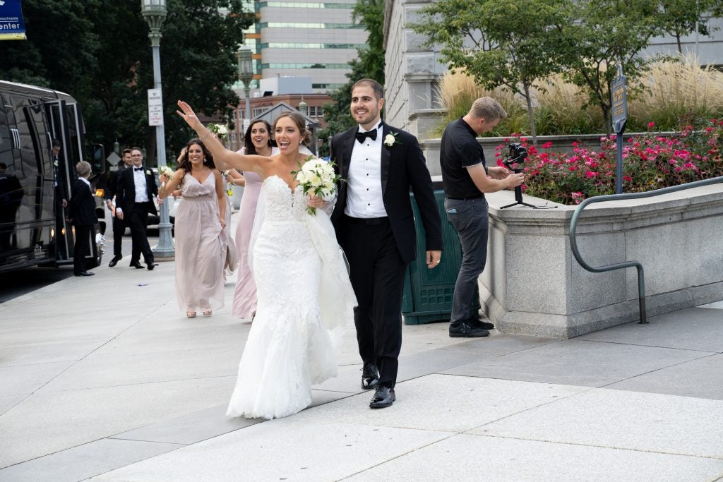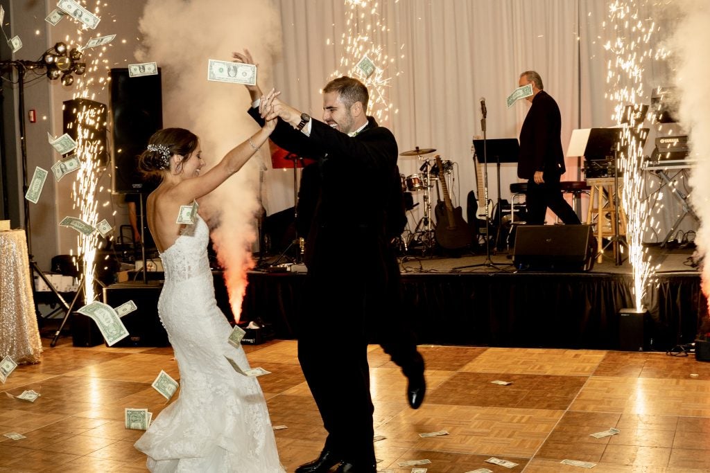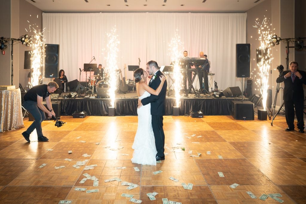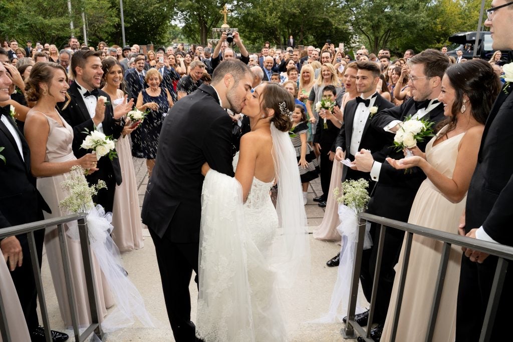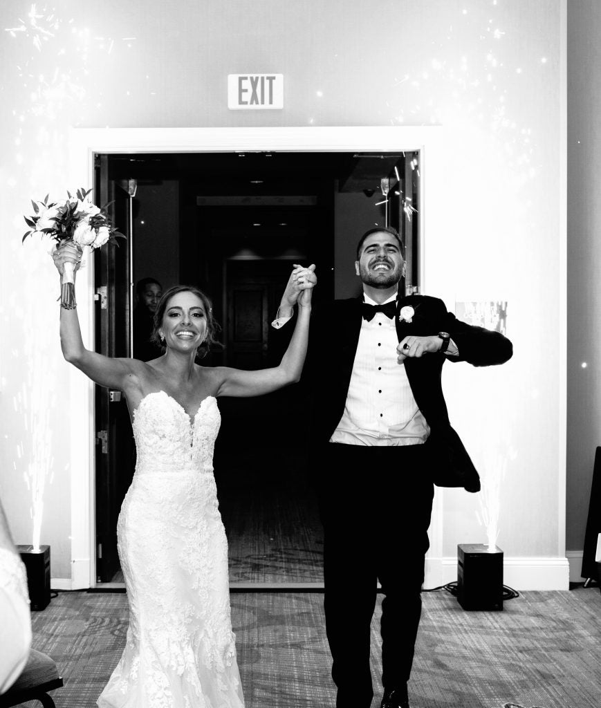 We come from two very loud and large Greek families, so we always knew we were going to have a big, fat, Greek wedding!!! We got married in my church Holy Trinity Camp Hill, PA and had the reception in Harrisburg, PA at the Hilton Hotel downtown. We had over 350 people come to our wedding and it was a night I will never forget. We had a very traditional Greek wedding with lots of Greek dancing, a long ceremony and lots of food! We had our beautiful Byzantine chanter come from DC, we had indoor sparklers that rocked our entrance and a perfect Greek band that kept us dancing all night long. I tried to incorporate our Greek theme with gold leaves and gold olive branches in almost everything. Our favors were Glass evil eye pendants. We had 8 speeches at our wedding – all were incredible and when my twin brother started to sob during his, all 350+ people in the room choked up of course, including me. My husband and I are not big cake fans, so for our cake we got a company to make us an ice cream wedding cake! It was amazing! My husband Ian, before the dancing began, secretly had been planning this all behind my back – got up and sang one of our favorite songs in front of all our guests. Our friend from London, played the piano while Ian sang and I could not believe he pulled off the most incredible surprise! There were so many special moments and it truly was the greatest day of my life! Photos: Frank King
